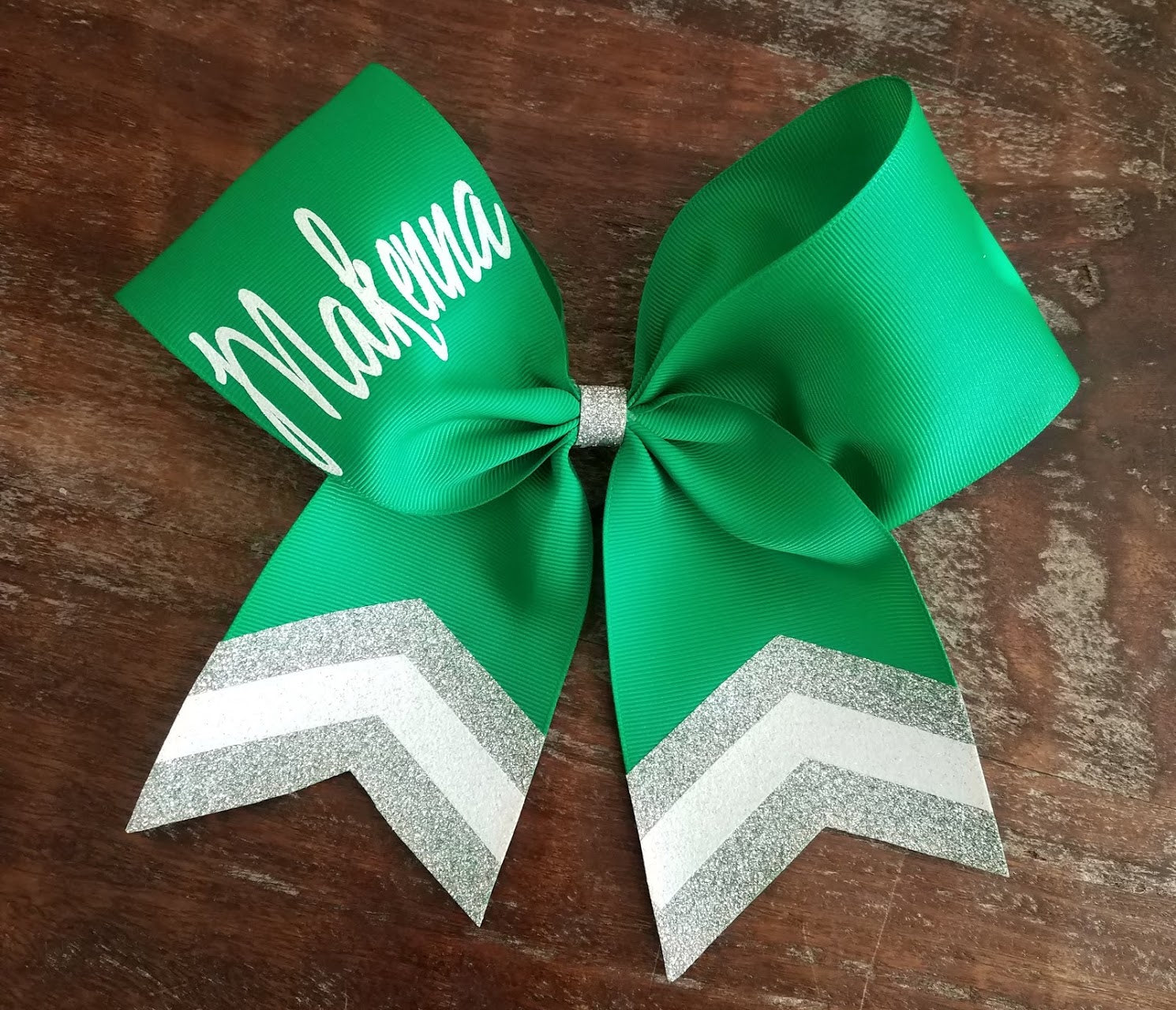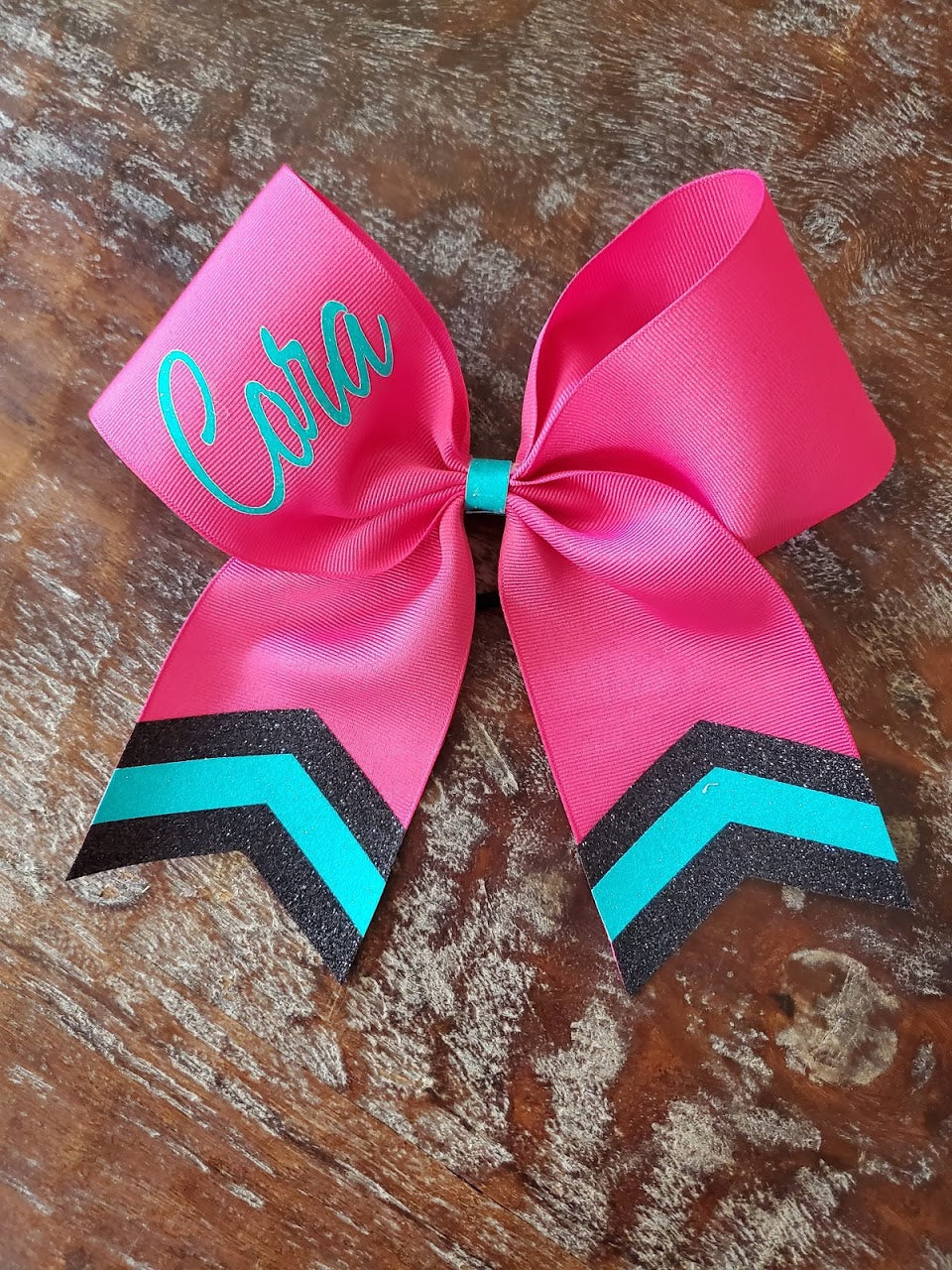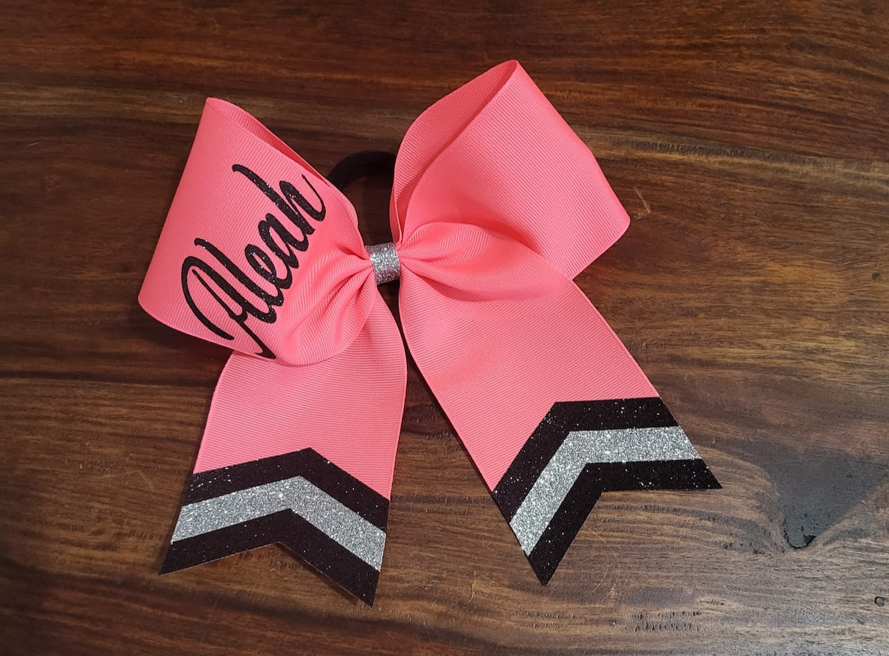 Custom Green or Pink Cheer/Dance /Softball Bow with Name