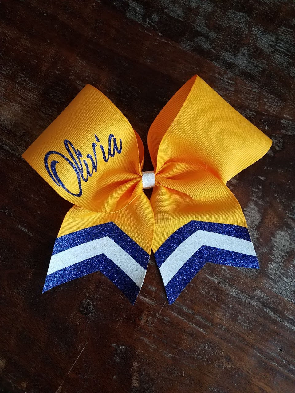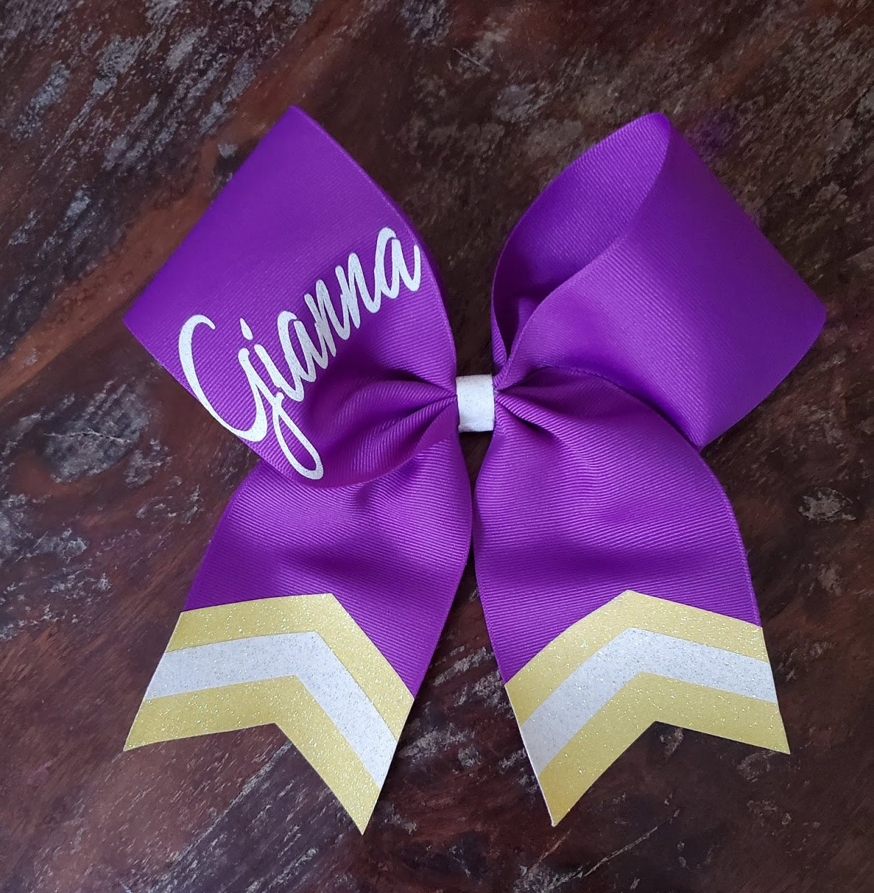 Custom Purple/Orange/Yellow Cheer/Dance/ Softball Bow with Name
