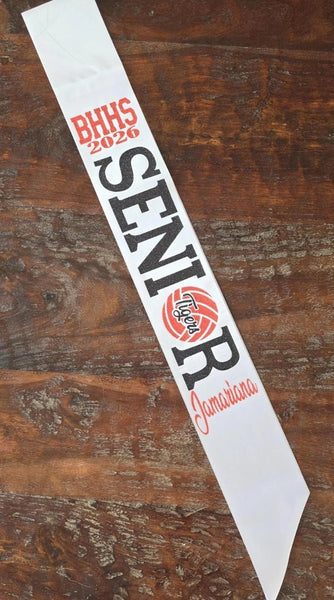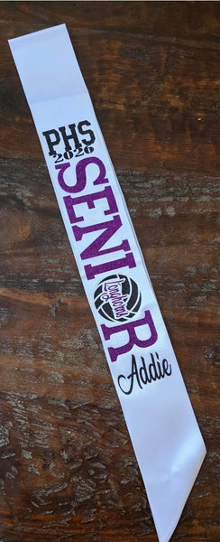 White Satin Senior Sash with Glitter HTV attached.