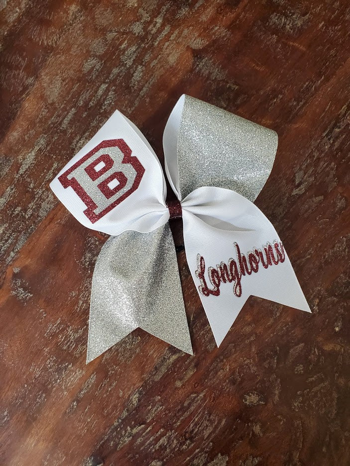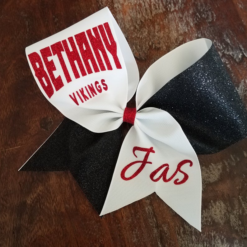 3 inch wide Grosgrain Ribbon with Glitter HTV attached. Colors can be changed.