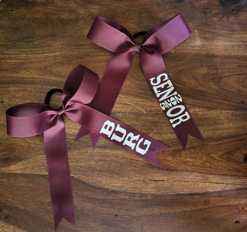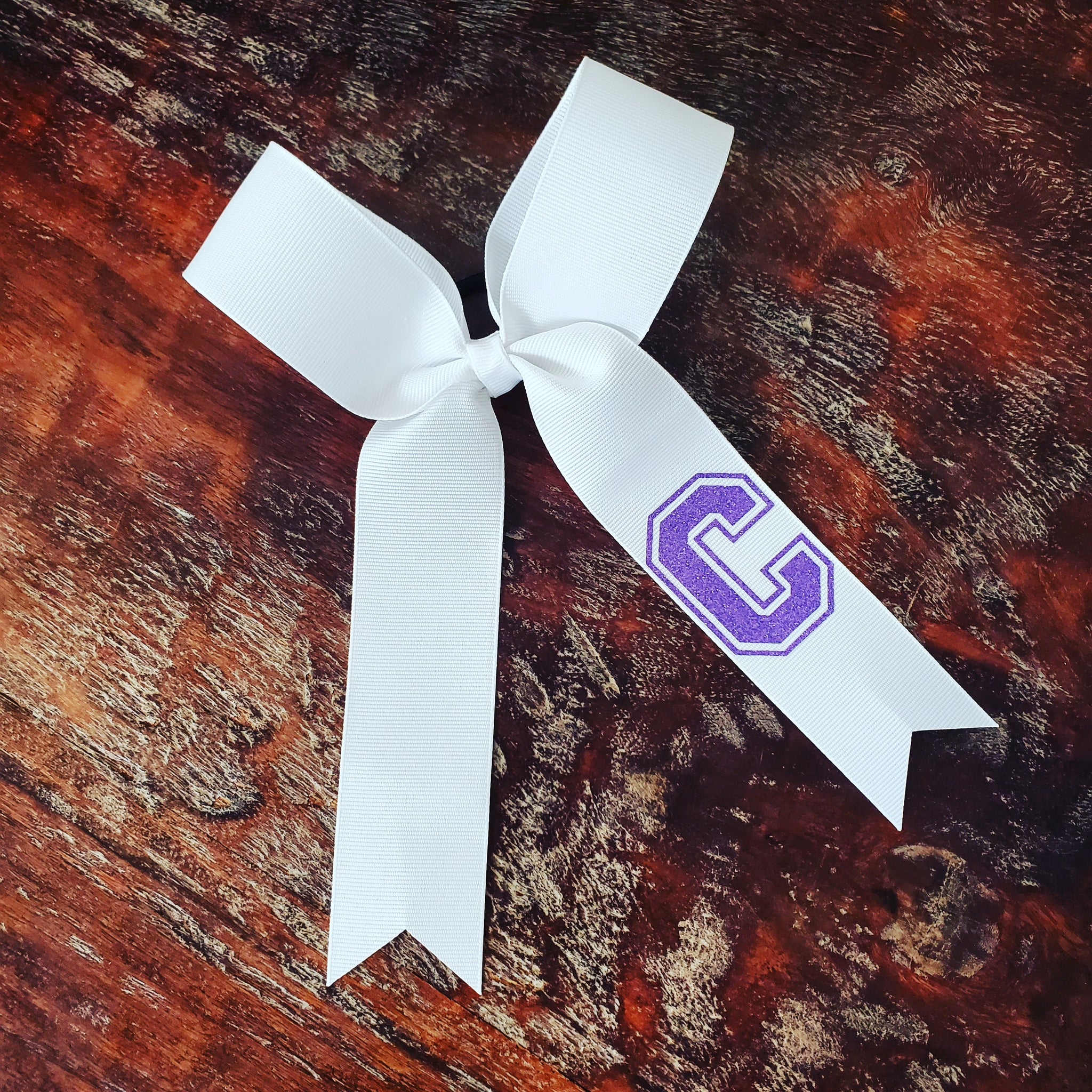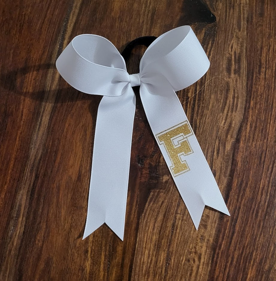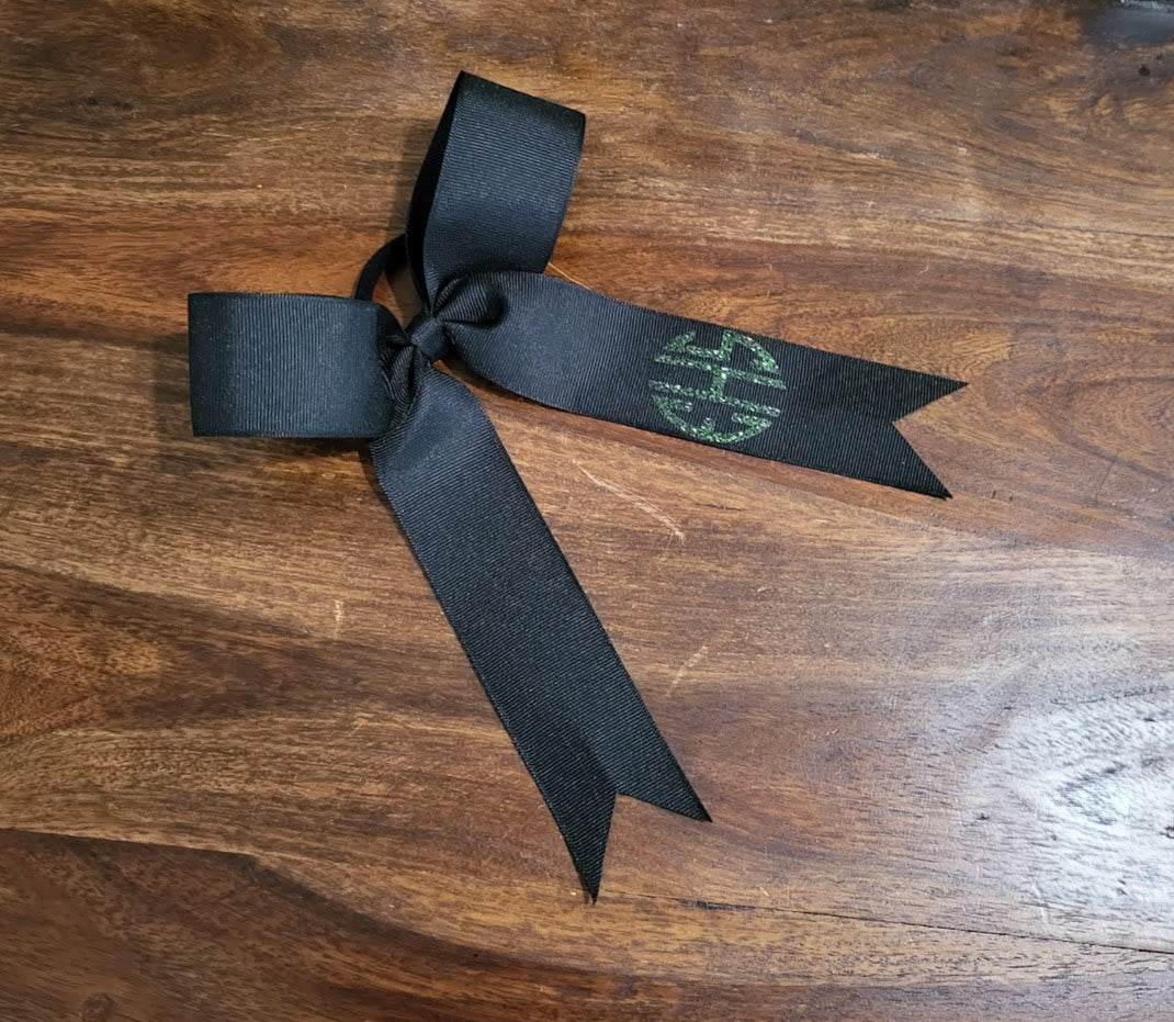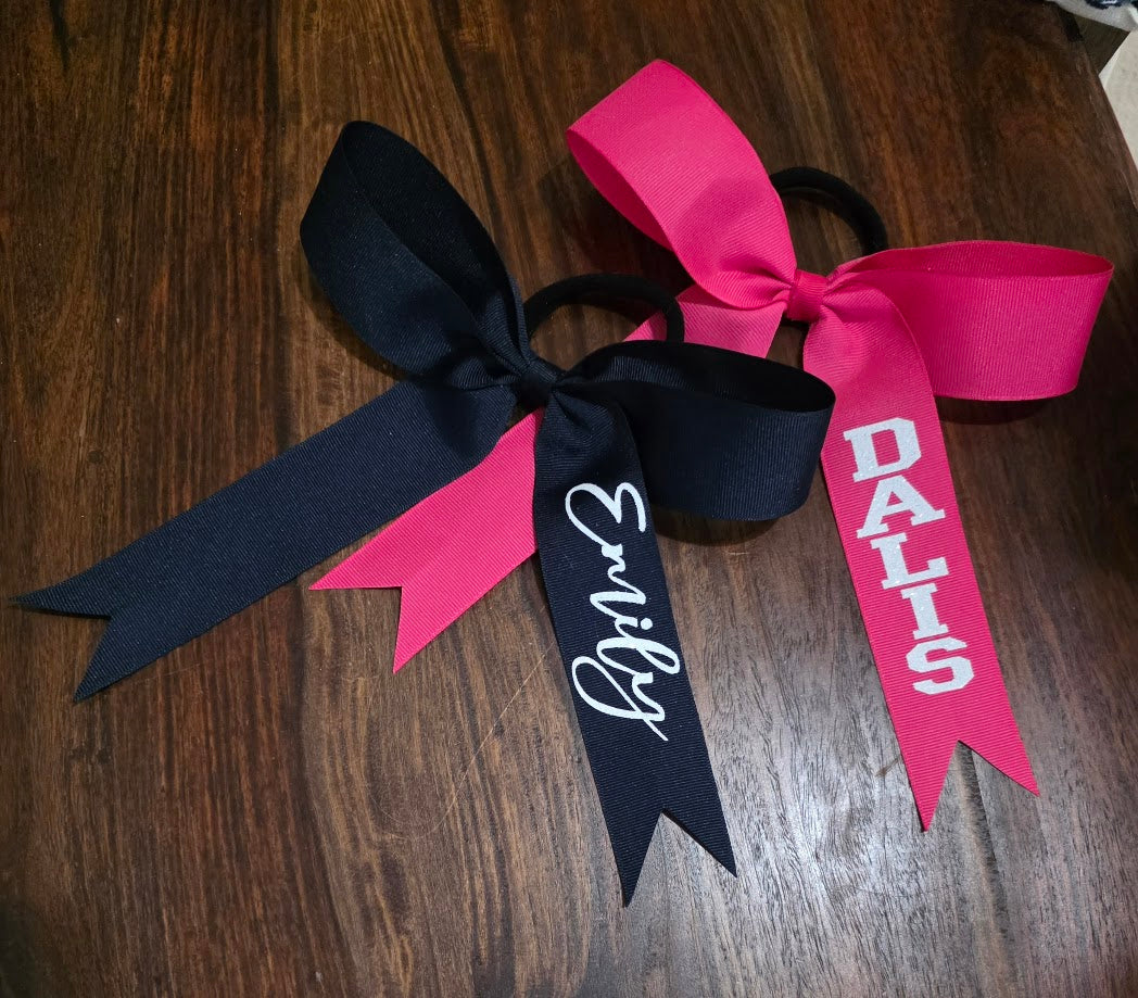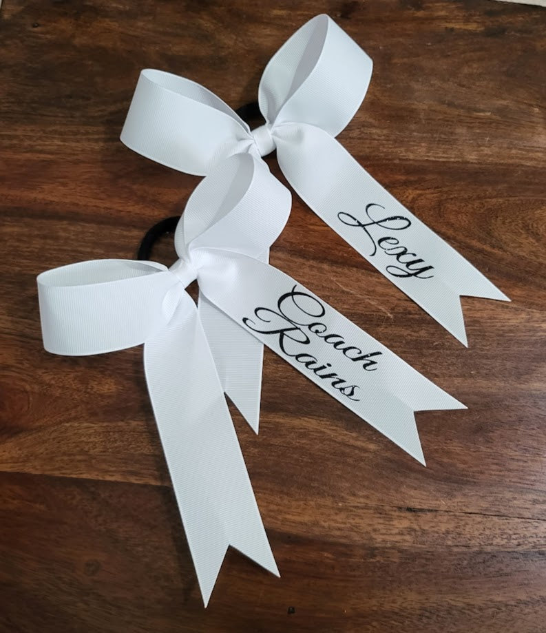 1.5 inch grosgrain ribbon with 1 name on tail in Glitter HTV