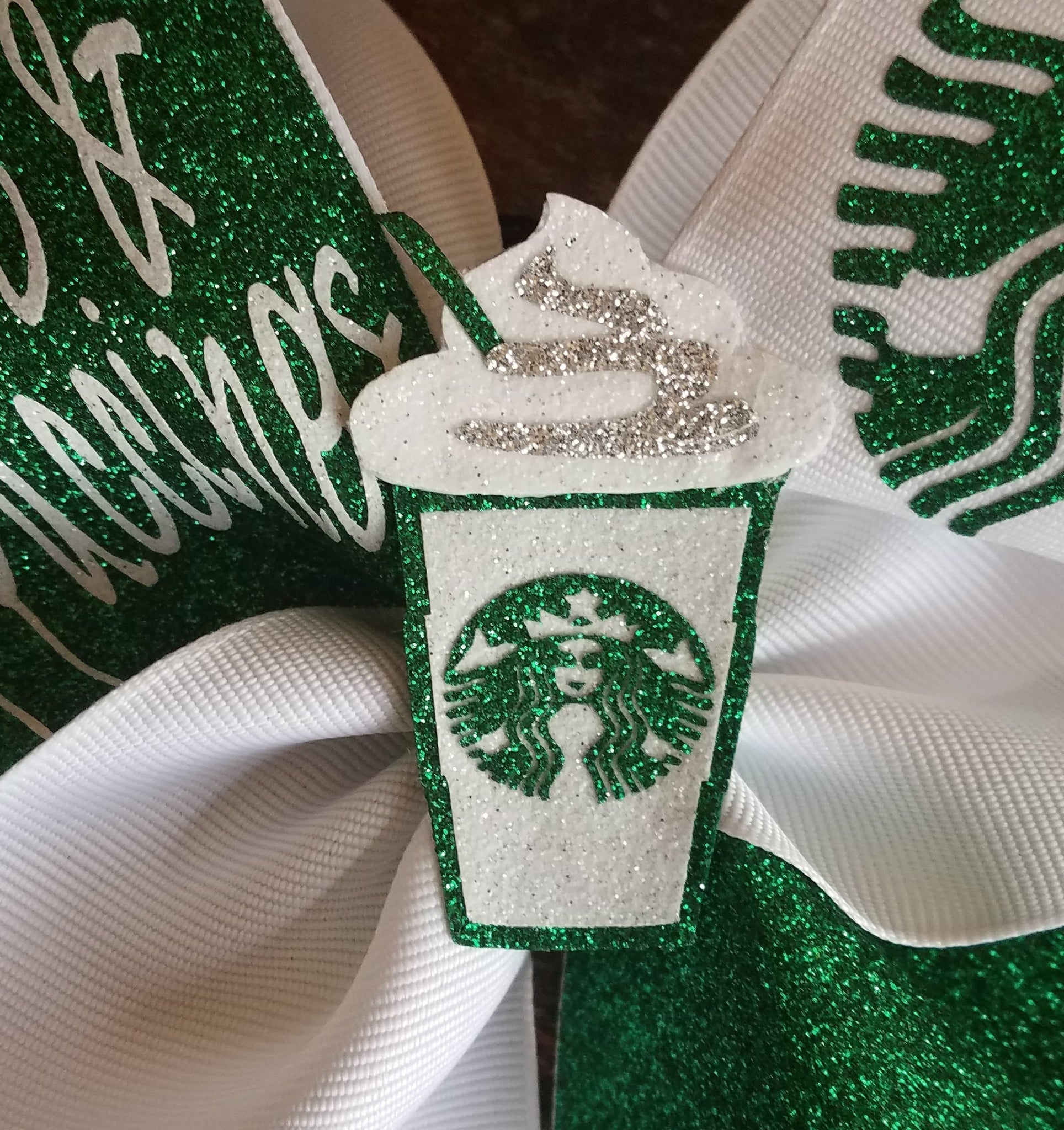 Starbucks Cheer Bow/ Dance Bow/ Softball Bow. "Big Bows and Frappuccinos"